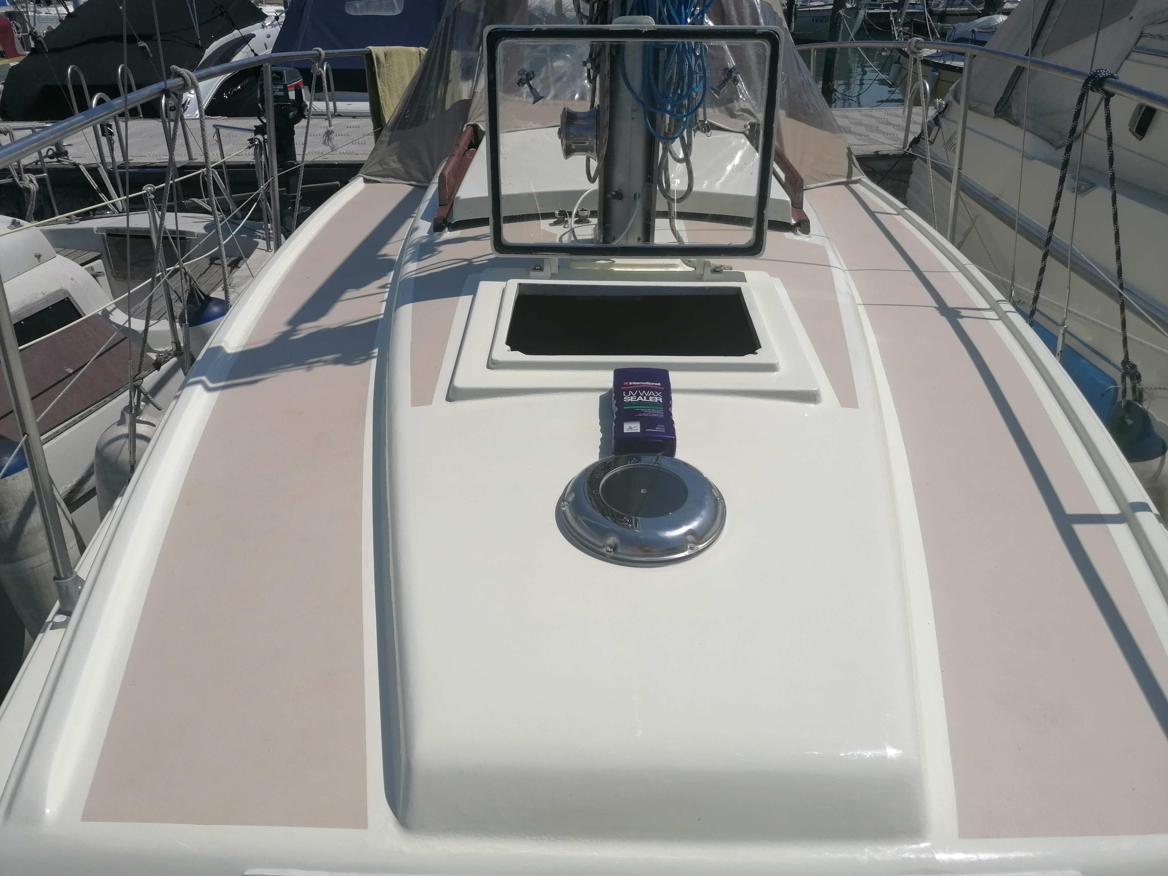 Diese Neptun 26 wurde während der Corona-Zeit vollständig neu aufgebaut - unter Anleitung eines Farbtechnikers von International und ausschließlich mit hochwertigen Werft-Lacken, wie sie normalerweise professionellen Betrieben vorbehalten sind. 2024 wurden alle Wanten und das laufende Gut erneuert. Im August 2024 erhielt das Unterwasserschiff drei Schichten Micron 350 Antifouling und ist damit für die kommenden Jahre bestens geschützt.